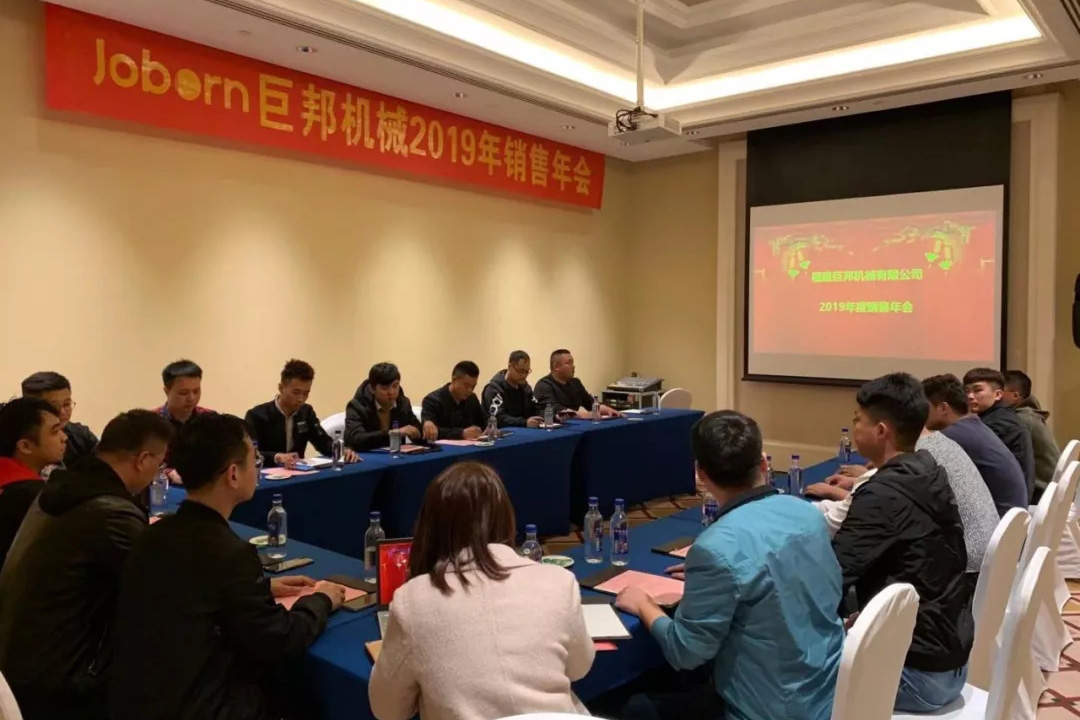 總經(jīng)理蔡建華、副總經(jīng)理鄭曉波、副總經(jīng)理高河森、銷售總監(jiān)李曉森及國(guó)內(nèi)外業(yè)務(wù)部所有銷售精英齊聚一堂,回顧總結(jié)2019年的成績(jī),展望布局巨邦機(jī)械未來(lái)的新發(fā)展。