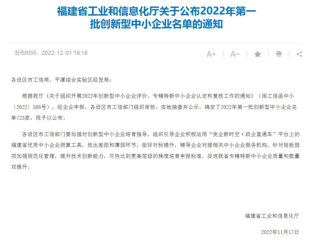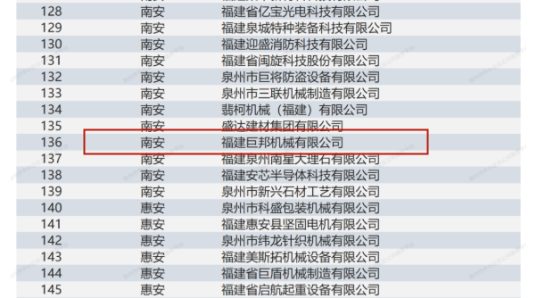 | 巨邦機械上榜福建省2022年第一批創(chuàng)新型中小企業(yè)名單 |
